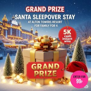 Alton towers Santa sleepover stay with 5k Cash Instant wins